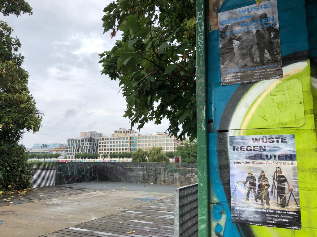 Am Sa 2.10. 19-20 Uhr und am So 3.10. 15-16 und 19-20 Uhr führen Camilla Fehér, Xaver Römer und ich die Performance WÜSTE-REGEN-FLUTEN am Spreebalkon in der Brommystraße Berlin-Kreuzberg auf.