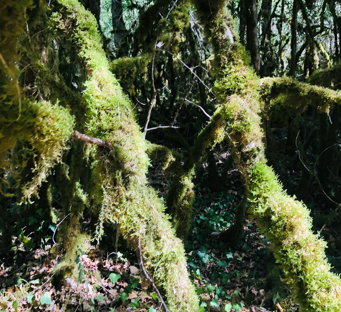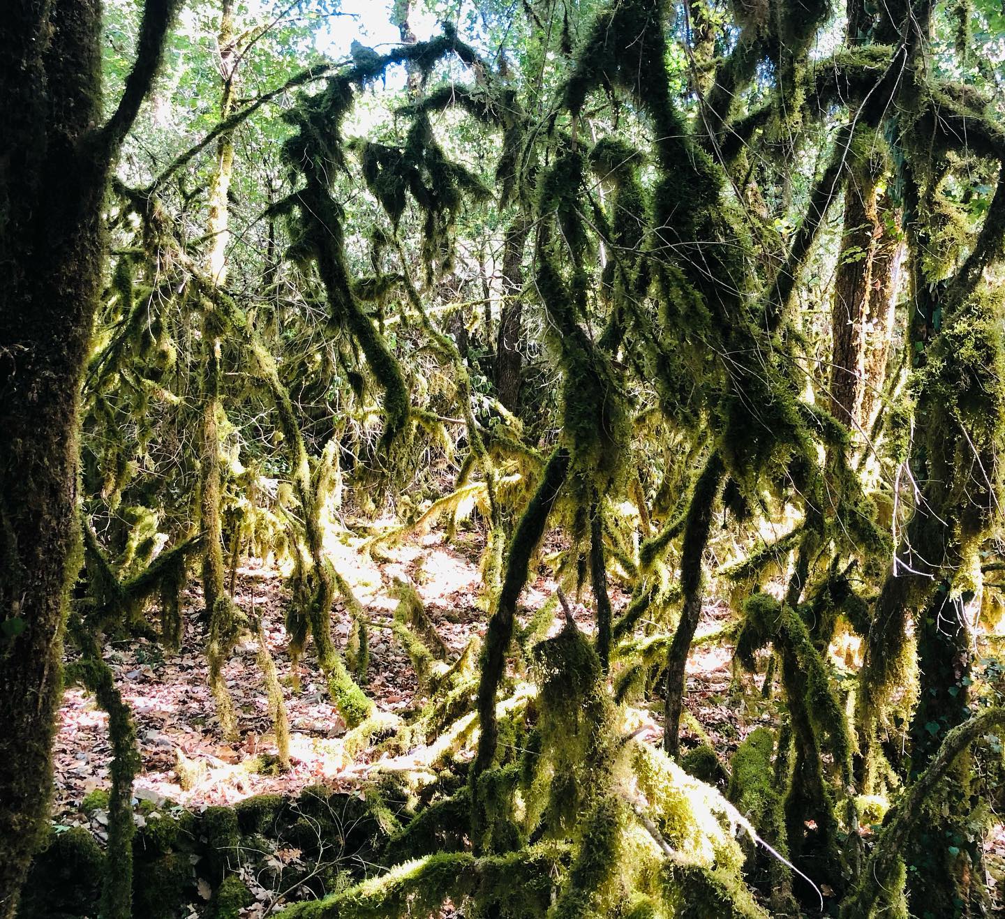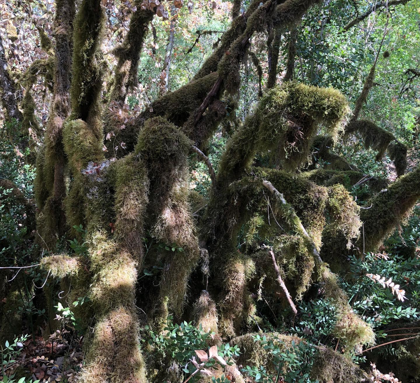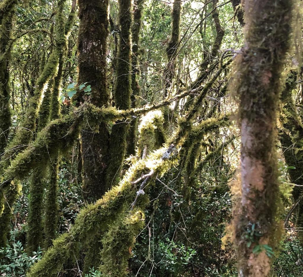 Neben und in einem ausgetrockneten Bachbett wuchern hier quasi-tentakuläre Verbindungen von Moosen, Flechten, Bäumen und Büschen, die einem das Gefühl geben, sich durch eine fremdartig-magische Region des Luftozeans zu bewegen.