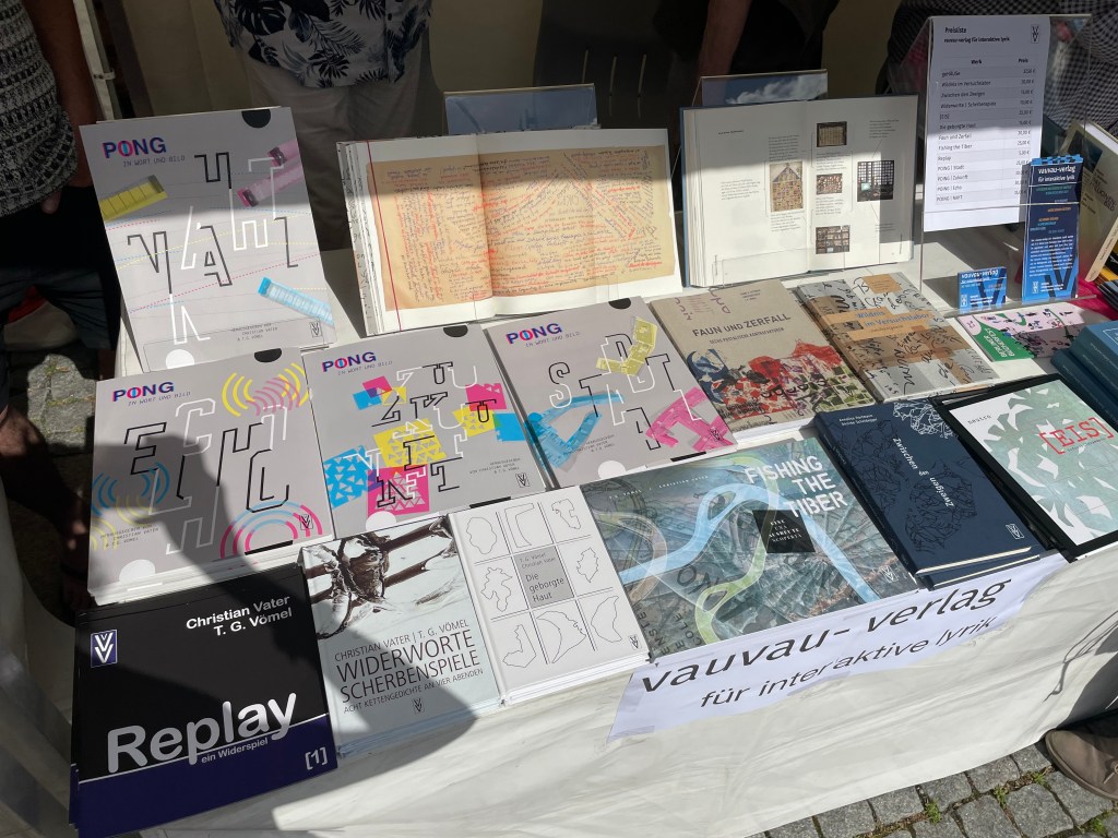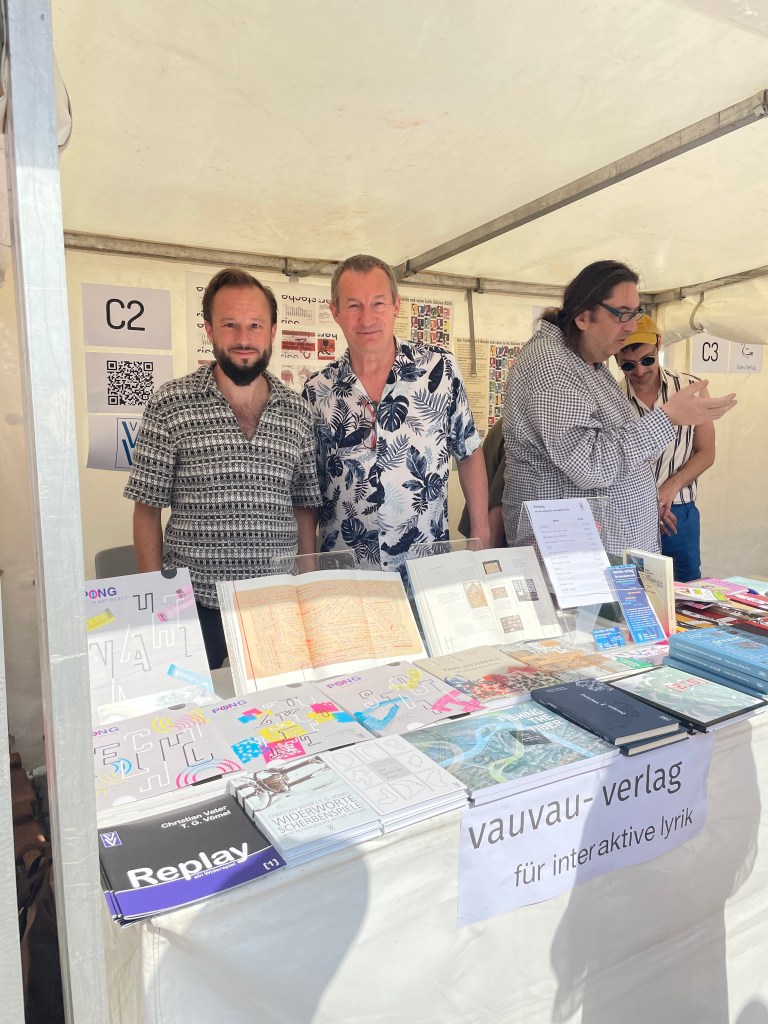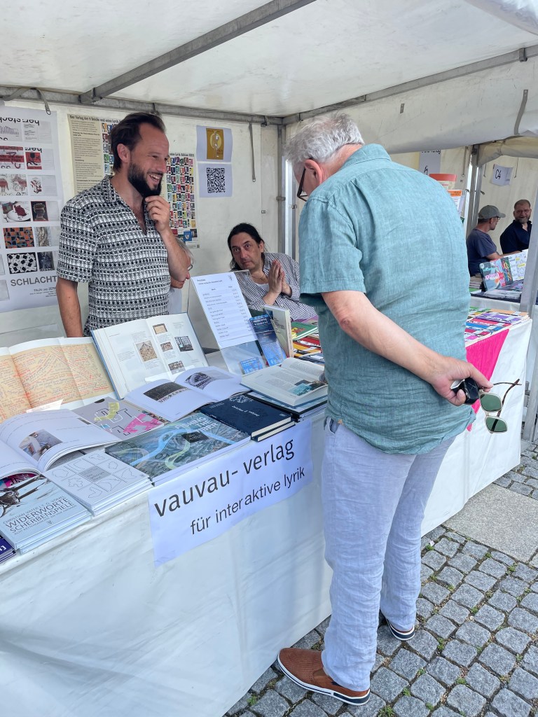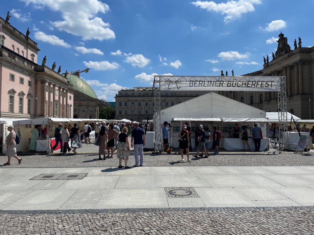 Beim Berliner Bücherfest am 28. und 29. Juni auf dem Bebelplatz in Berlin-Mitte präsentierte der vauvau-Verlag unser Buch an seinem Stand. Am Sonntag war eine Signierstunde für „geHÄUSe“ angesetzt. Und, ja: es gab durchaus reges Interesse am Verlagsprogramm und ich durfte auch signieren.