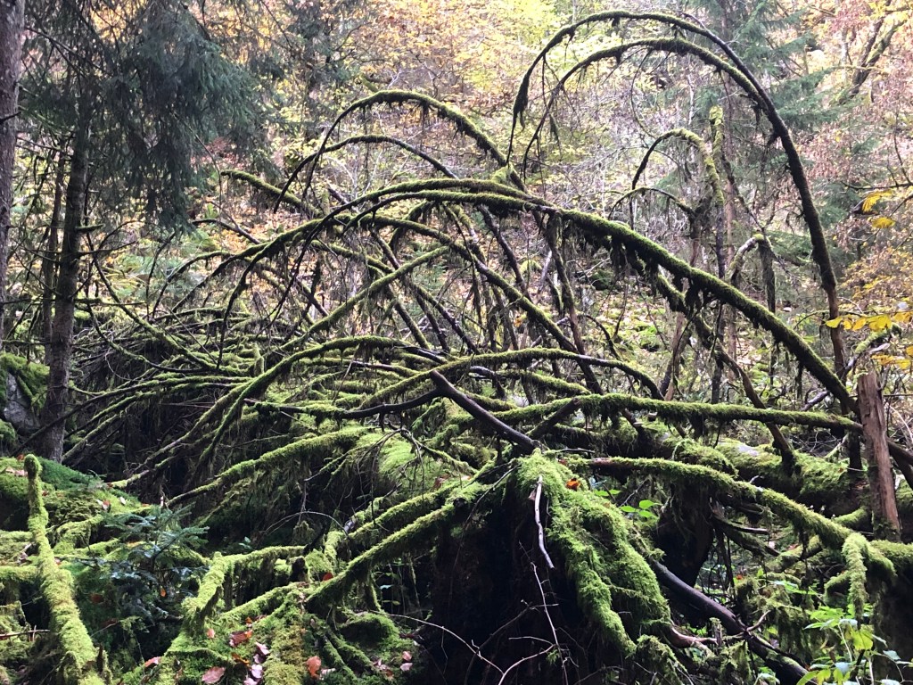 Am anderen Ende des Weges durch den Wald trifft man, wie mir Waldspaziergänger erzählen, auf einen „Kraftort“, an dem sich in Vollmondnächten eine Trommlergruppe trifft, die über einen Schamanen und eine Facebookseite verfügt.