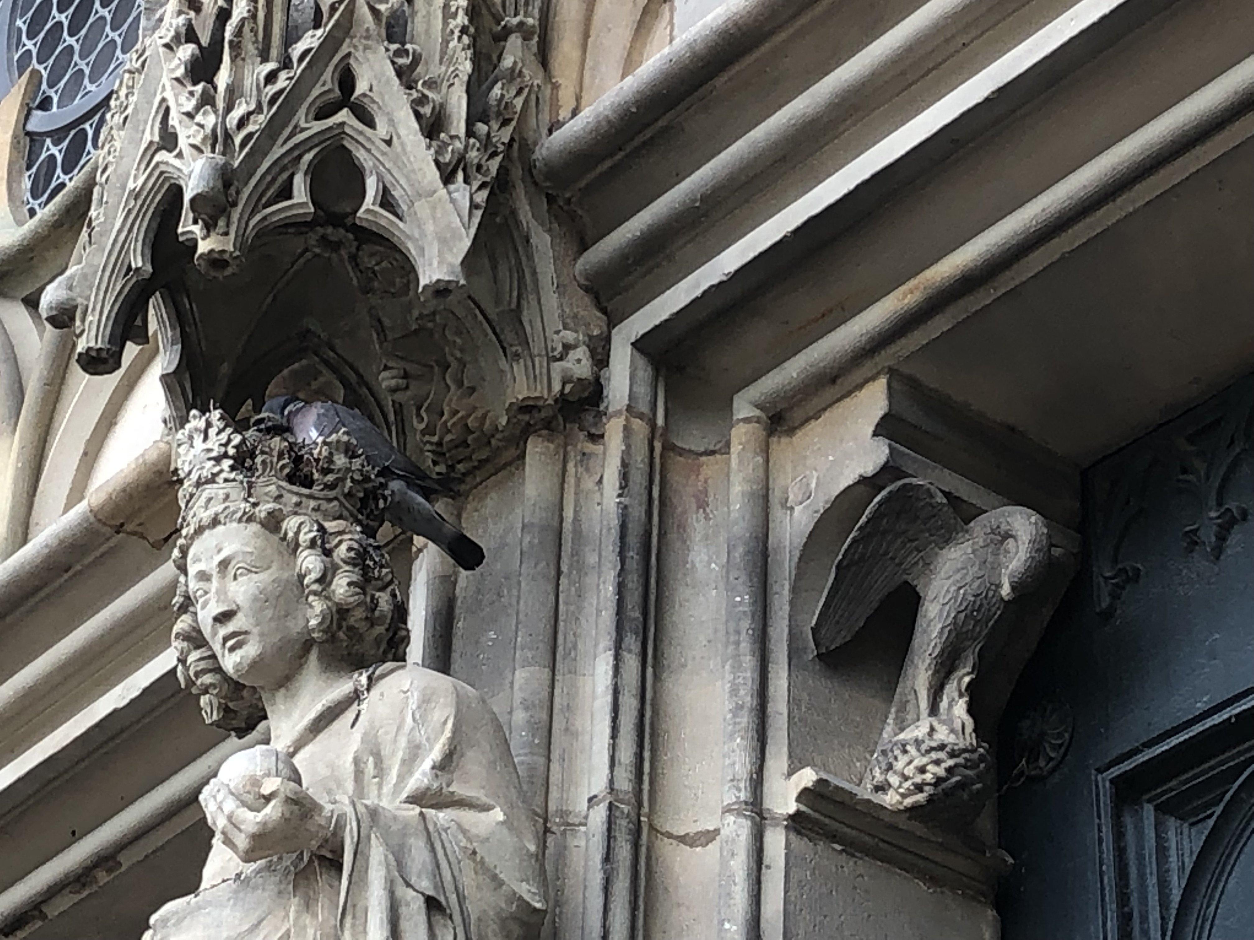 So kann eine Krone etwa ein guter Brutplatz für Befiederte sein. Die Herrschaftsinsignie eignen sich dafür gar nicht schlecht. Welche Verstrickungen sich in der menschlichen Zeichenwelten daraus ergeben, soll nicht die Sorge einer Taube sein.